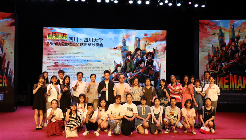 2019年4月26日第二十八届时报金犊奖全球创意分享会在我校举行。参加本次创意分享会的嘉宾有:中共成都市委宣传部巡视员叶浪、成都市人民政府台湾事务办公室宣传处处长钟馨、德赢vwin体育官网登录广告与传播学主任杨效宏教授、彭虹副教授、饶广祥副教授、王婉如老师,网络与新媒体教研室主任张悦副研究员、旺旺中时文化传媒(北京)有限公司总监/时报金犊奖代表方伟光先生、生米组成联合创始人姚俊先生、成都大学中国-东盟艺术学院美术与设计学院产品设计系副主任张鸶鸶副教授、成都传媒集团成都传华艺展有限公司总经理彭浩宇、掌阅科技品牌总监范彬彬、旺仔旺铺平台推广主管刘科赛、旺旺集团成都分总监黄崇军、海尔集团统帅品牌统帅空调总监王惠以及成都地区的老师和同学们。