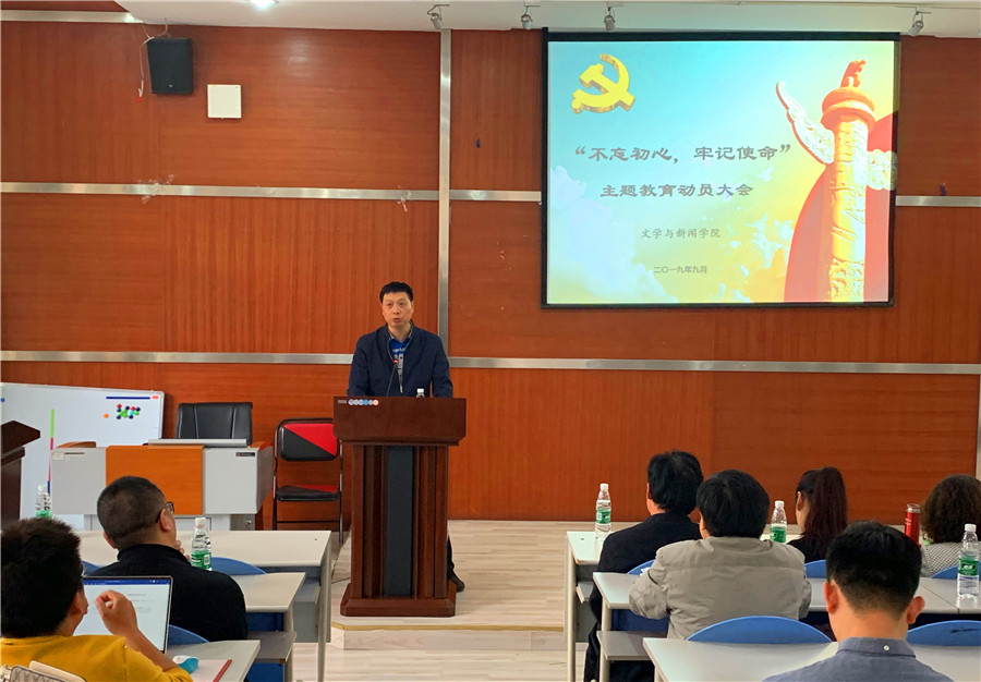 9月19日下午,德赢vwin体育官网登录德赢vwin体育官网登录“不忘初心、牢记使命”主题教育动员大会在望江校区文科楼二楼阶梯教室召开。学校第八指导组组长、校机关党委专职副书记兼纪委书记韩杰同志出席会议并讲话。学校第八指导组成员、校长办公室副主任吴刚、校工会副主席冷泠以及指导组其他成员到会指导。