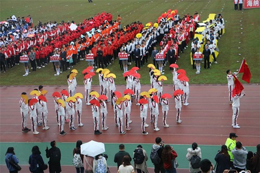 开幕式上,红旗队护卫着国旗、校旗、校徽,以及“海纳百川、有容乃大”的校训展牌和“严谨 勤奋 求是 创新”的校风展牌入场。随后,来自各学院的35个代表方阵依次进入运动场。德赢官网代表团师生昂首挺胸、精神饱满,他们步伐整齐、口号嘹亮——“壮志文新,砥砺前行,热血激荡,青春飞扬”,手持国旗和印有学院标志的表演折扇步入会场,展示了积极向上的的精神风貌。据悉,德赢官网参加表演方阵的有2位老师和48名学生,有80名学生报名参加29个项目的比赛。方阵入场毕,在隆重庄严的升旗仪式中,2019年德赢vwin体育官网登录学生运动会拉开序幕。