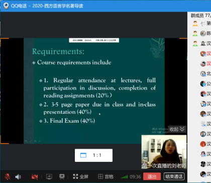 2月24日,星期一3-4节课的《古代汉语2》,雷汉卿老师已经在qq群提前上传了教学所用书籍的电子版,以原典阅读与文言习作为主,制定全面详细的授课计划,紧密联系原典。为学生们提供阅读思路、抛出问题、答疑解惑。线上教学课堂参与、课堂互动更加便捷,提问、讨论并解决问题的效率显著提升,效果较好。学院巡课中发现,学生根据老师的讲解,随时在群内提问,或与其他同学针对具体问题展开讨论,问题具有时效性,老师与助教能够有效了解同学们的上课状态,有助于提升教学质量。