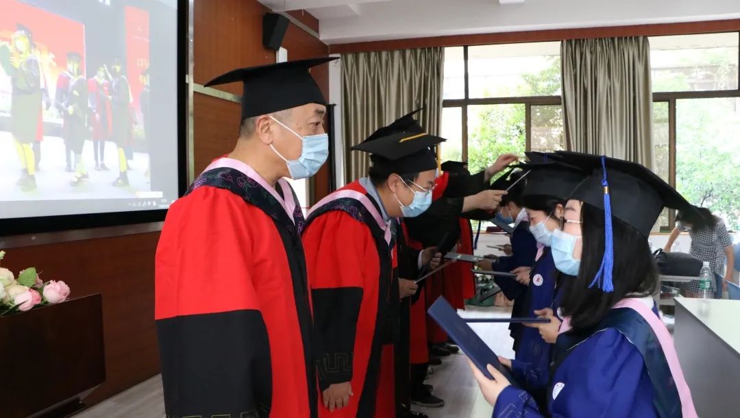 在为2020届校友联络人颁发聘书后,学位授予仪式正式开始。主会场学位分委员会主任曹顺庆教授、李怡院长以及分会场古立峰书记、周维东副院长、操慧副院长分别为德赢官网研究生与本科生毕业代表颁发毕业证书并授予学位。