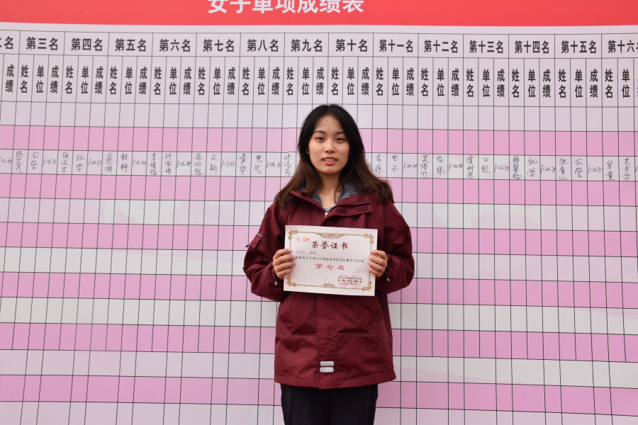 高雨恬同学获得女子400米第七名