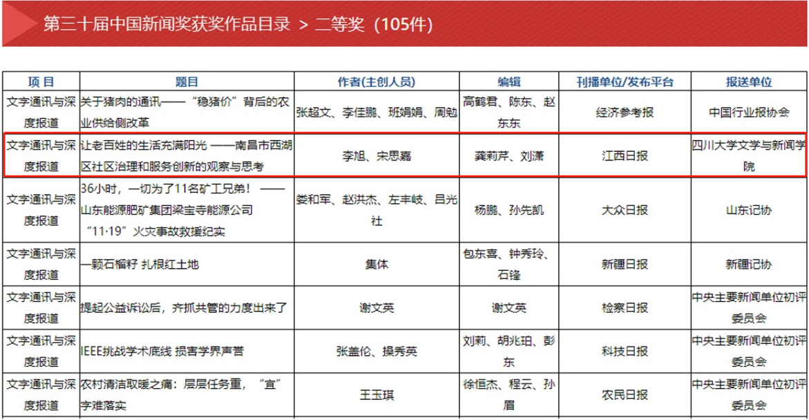 第三十届中国新闻奖“文字通讯与深度报道”二等奖部分获奖作品名单