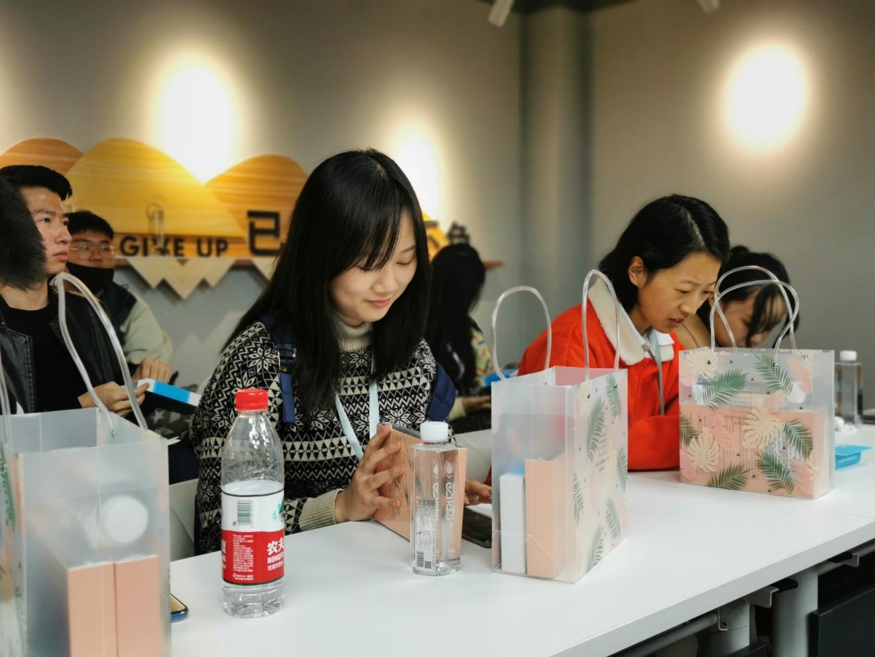 接下来,大家抵达第三站——云城会文商创意产业园,来到园区2020年度创新创业示范单位大成企业,了解其业务范围、运营模式、企业文化以及营销方式。大成企业负责人马晶从自身经历出发,告诉同学们要注重创新与品牌打造,并且要有良好的职场和创业心态,善于发现问题和解决问题。中农遇善文旅产业集团创始人刘潇董事长也来到现场,为同学们分享了内容产业为王的新时代文旅业,勉励同学们带着创意学习体验,用专注和专业创造属于自己的美好人生。