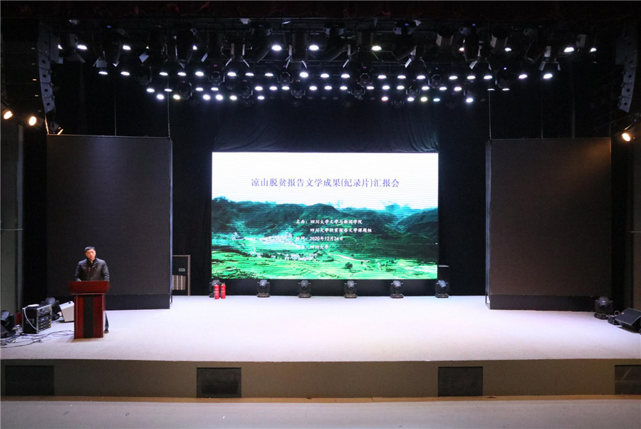 2020年12月24日,德赢vwin体育官网登录“纪录片与大文学”专题研讨会于我校江安校区文科楼举行。会议由德赢官网以及我校凉山扶贫报告文学课题组主办。德赢官网党委书记古立峰教授、院长李怡教授、我校社科处处长傅其林教授、我校宣传部教育电视台台长蔚钰、我校扶贫办副主任魏忠、学院副院长操慧教授、侯洪教授,西南民族大学民族语言文学研究院院长阿库乌雾教授,著名作家蒋蓝、马平,以及凉山扶贫报告文学课题组的徐新建教授、梁昭副教授、邱硕副教授与余孟庭导演等参加了会议。