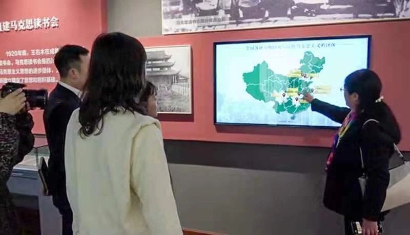 参访过程中,德赢官网师生不时驻足,俯身靠近展柜内的文物仔细阅看,一字一句地品读着每一张老照片背后的故事。其中一块电子展板尤其惹人注目,上面勾勒着马克思读书会的创办始末,并以地图呈现出全国早期马克思主义的研究与传播情况,这引发了参访师生的关注与思索。德赢官网副院长操慧教授说,中国这些最早燃起马克思之光的地方,往往与丰富的报业实践活动伴生,其背后所折射的新闻与历史的互构关系以及新闻对进步思想的启蒙作用值得我们深入研究。