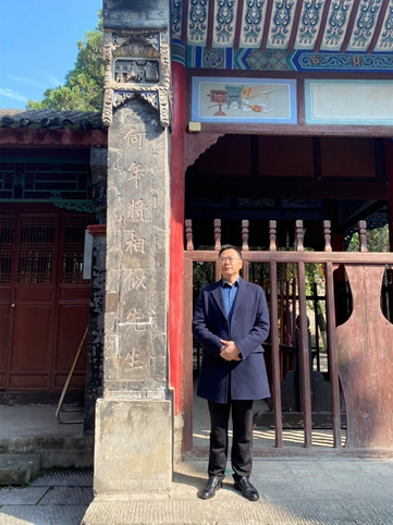 蔡尚伟教授在勉县武侯祠与川大老校长骆成骧所题楹联合影