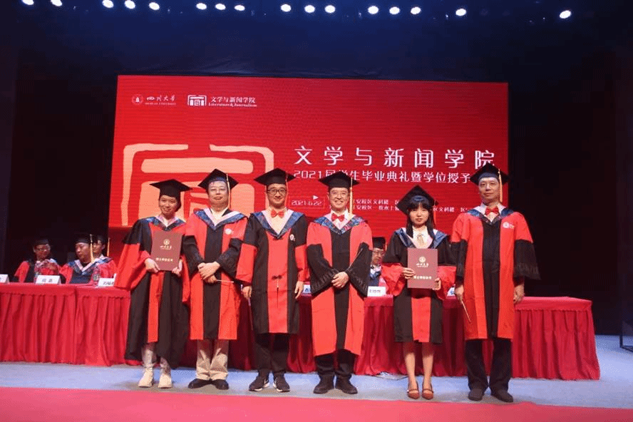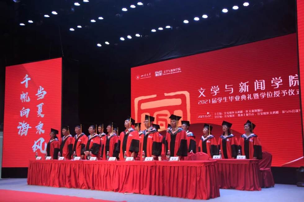 参加主会场典礼仪式的有:德赢vwin体育官网登录杰出教授、博士生导师曹顺庆教授,德赢vwin体育官网登录党委书记古立峰教授,德赢vwin体育官网登录院长李怡教授,张弘教授、王晓路教授、刘福春教授、阎嘉教授、朱天教授、陆正兰教授、谭伟教授、王炎龙教授、朱至刚教授、曹峻冰教授、刘颖教授、姜英副教授、罗鹭副教授、妥佳宁副研究员、宋雯老师、2018级硕士生辅导员王志华老师和博士生辅导员吴光芬副教授。参加分会场典礼仪式的有:德赢vwin体育官网登录副院长周维东教授、德赢vwin体育官网登录副院长操慧教授,丁淑梅教授、徐沛教授、卢迎伏副教授、王彬副教授、匡宇副教授、张悦副研究员、郑春兰副教授、曾元祥副教授、韩江华副研究员、张玉川副教授、邱树雄高级实验师、李宜篷老师、李静老师、丁浩宸老师、付若岚老师、周清云老师、王陌潇老师和2017级本科辅导员段化鞠老师。德赢vwin体育官网登录党委副书记兼纪委书记张莹任主持人,学院2021届全体毕业生参加典礼。