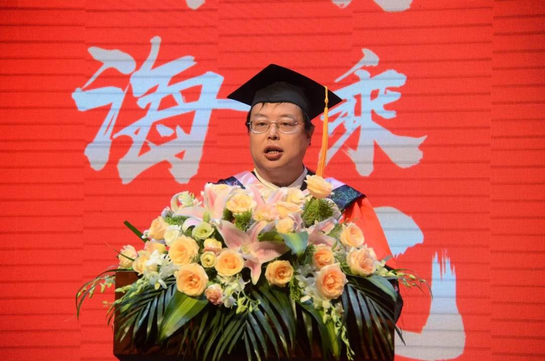 教师代表王炎龙教授向毕业生们表达祝贺,并向为同学们的成长付出辛勤汗水的老师、教职员工和家长们致以崇高的敬意和衷心的感谢。“在座的本、硕、博毕业生们,身着不同颜色的学位服,却镶嵌着一个共同的母校的名字——德赢vwin体育官网登录。”王炎龙教授说,在德赢vwin体育官网登录,同学们都收获了不悔的青春。青春多姿多彩,却只有一个颜色是永恒的,那就是本色。他用纯真、纯粹、纯正、纯良、纯美的“本色”为由,寄语在座毕业生:“以本色置身于纷繁世界中而能明辨是非,保持人品的底色,提振人生的底气,坚守人性的底线。”他希望大家走出校园后,脚踏实地,登高望远,“因为最美的风景往往在不远处,最美的情境往往在最高处。当你们倦怠的时候,德赢vwin体育官网登录是你们的家。”
