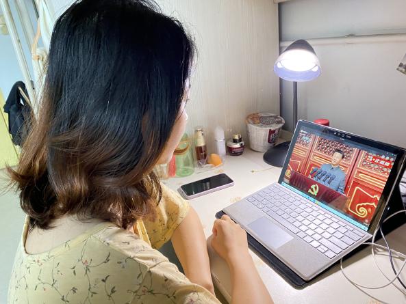 德赢官网党委书记古立峰教授,院长李怡教授,副院长胡易容教授、周维东教授、操慧教授,院工会主席罗梅研究员,学院党政办主任银浩和德赢官网各教研室主任等老师在德赢官网311办公室观看直播。德赢官网2020级硕士第三党支部和第四党支部的党员、入党积极分子代表在文科类一区116教室认真观看大会直播。德赢官网其他老师与各年级学生在宿舍、图书馆、教室、办公室及其他公共场所通过手机、电脑、平板等电子设备认真收看大会直播。直播结束后,德赢官网党员师生纷纷发表了自己的观看感想与心得。