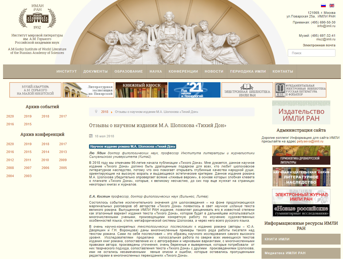 俄罗斯科学院高尔基世界文学所官网摘录