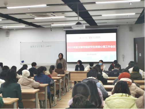 2021年12月1日中午,德赢官网“研究生班级心理会议”在文科楼一区109召开。德赢官网党委副书记张莹老师、文新嘤鸣坊负责人段化鞠老师、博士生辅导员吴光芬老师、2021级硕士辅导员王志华老师、2020级硕士辅导员雷子慧老师、2019级硕士辅导员陈羲老师以及研究生各班级心理工作负责人等80多人参加了会议。