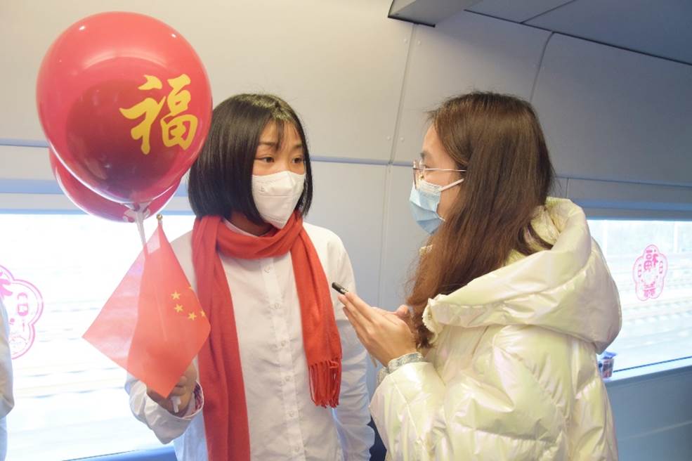 车厢内,同学们分头行动起来,采访旅客们对春运首日的感受。经常来往成都与泸州的赵女士告诉大家,这条高铁线路大大方便了自己的出行,“相比于我之前自驾的4个多小时,现在最起码节省了2个小时,更重要的是不用开车,旅途更加轻松。”