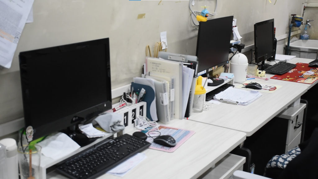 临近年关,实验室还充满着机器的轰鸣声和忙碌的人影,一如往常。实验室的门口都张贴着安全须知和值班表,确保节假日期间仍有师生在岗跟进实验进度。