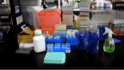 德赢vwin体育官网登录华西基础医学与法医学院公共平台实验室操作台上的器材