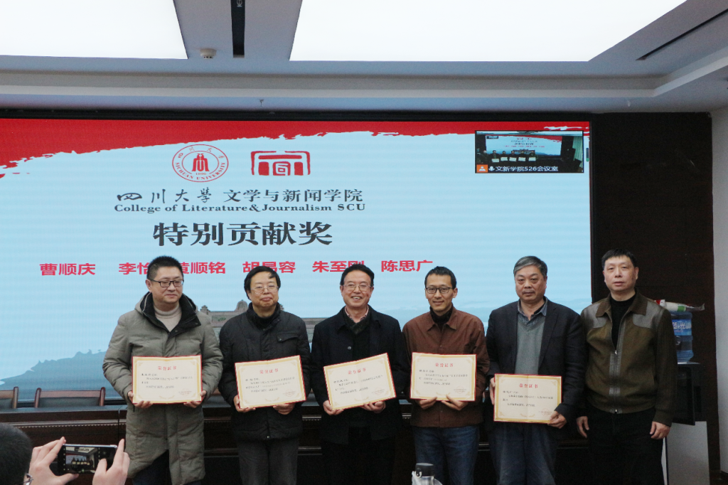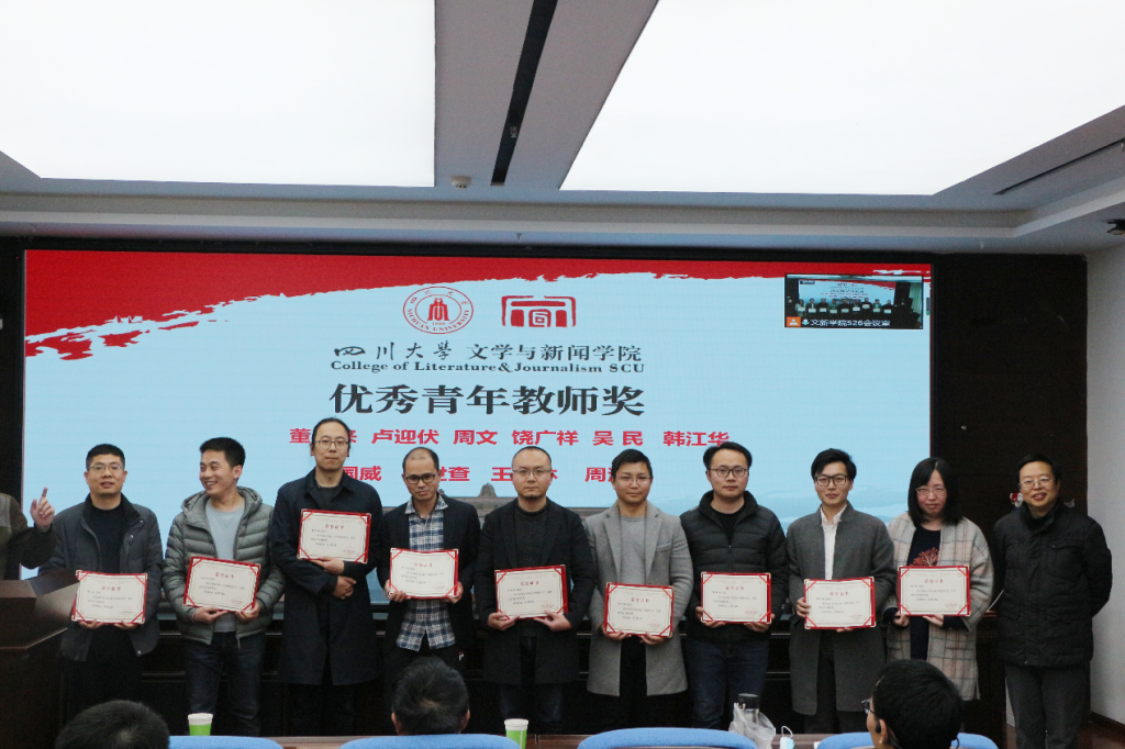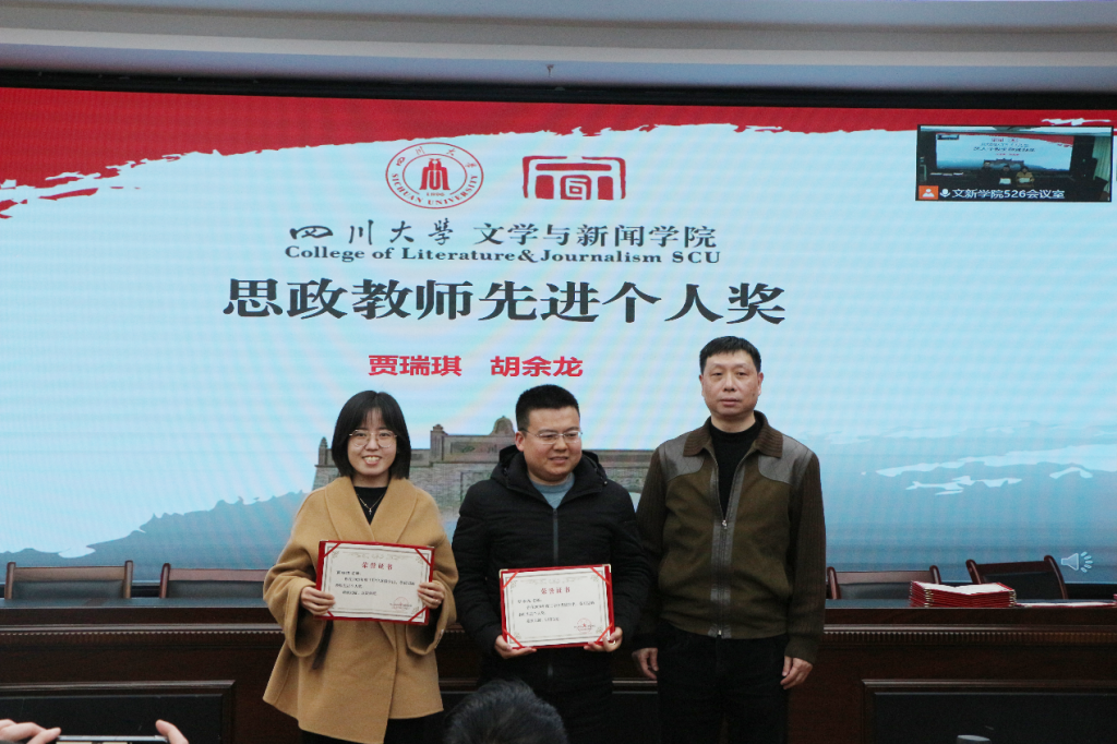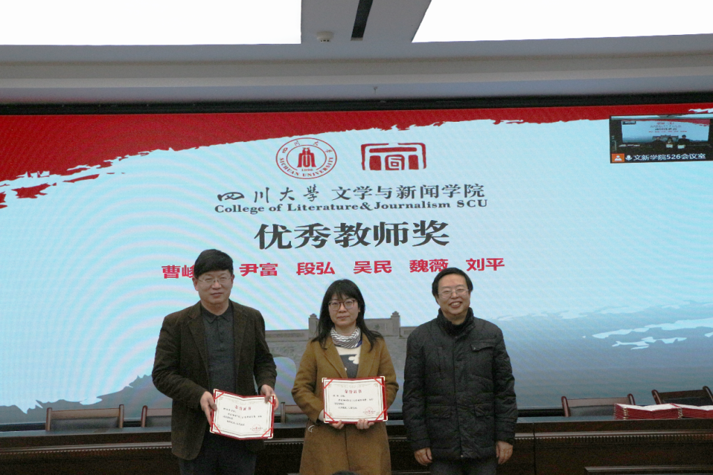 年度工作总结和新学期相关工作布置说明结束后,古立峰书记宣布2021年德赢官网对各项工作表彰的获奖名单并说明了评奖原则。在欢快热烈的音乐中,古立峰书记、李怡院长与学术院长曹顺庆教授共同为德赢官网获奖教职员工颁奖。