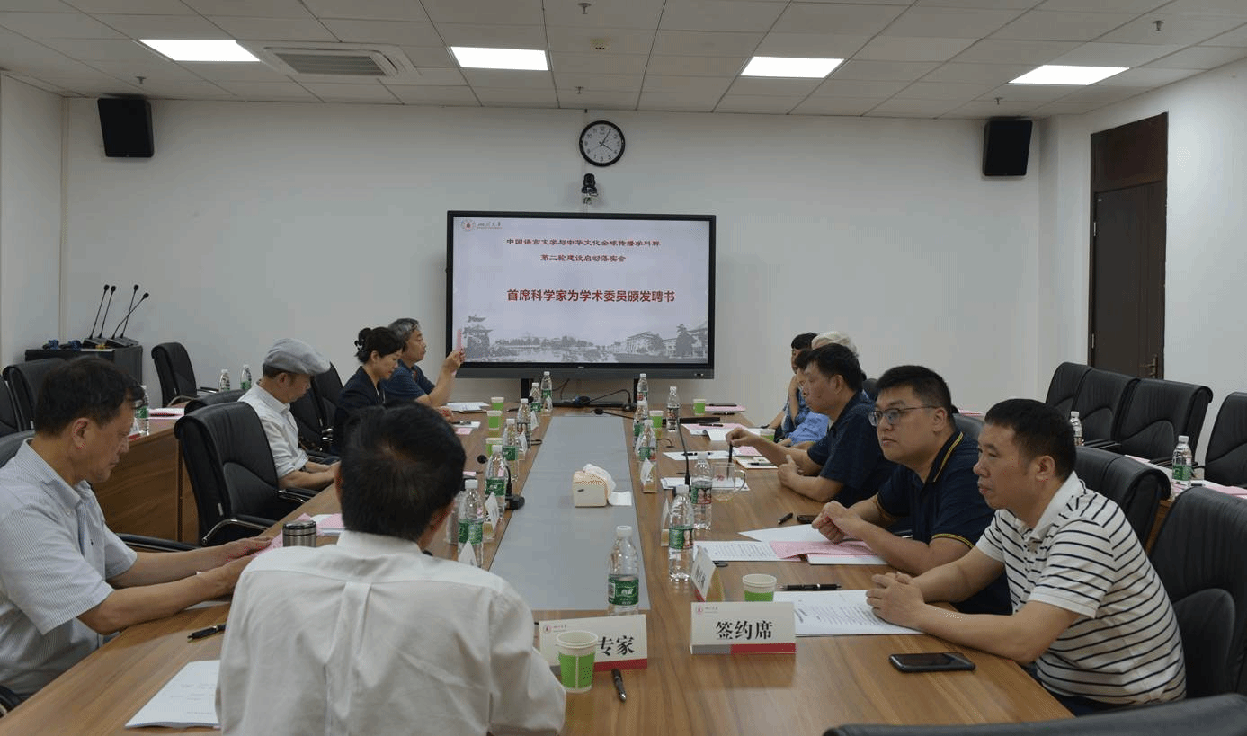 为促进学科群发展,本着学术本位、尊重专家的理念,学科群以重点建设方向为基础,设立了跨学科学术委员会。会上,学科群首席专家曹顺庆教授为学术委员颁发了聘书。