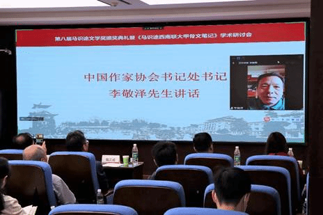 中国作协书记处书记李敬泽在线代表中国作协对马识途先生表达崇高的敬意,也对颁奖典礼和即将举办的《马识途西南联大甲骨文笔记》学术研讨会表示祝贺。他说,“马识途文学奖”体现了马识途先生对于年轻学生成长的高度关怀和中国文学成长的强烈期待。他祝愿“马识途文学奖”越办越好,为推动新时代中国文学的繁荣作出更多贡献。