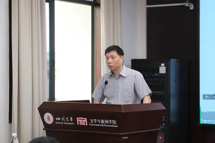 会议进入主题发言阶段,专家学者们围绕着“语言学”及“文学与文化”两个专题进行了交流互动。在语言学专题讨论中,雷汉卿教授表示,马识途老先生的《马识途西南联大甲骨文笔记》忠于文字学,传承学术精神,堪当甲骨文学科入门教材。罗鹭教授认为,马识途先生别开生面地从“人”的角度研究甲骨文,具有现代学术精神,不拘泥于传统。王长林老师则从作品的体裁着手,分析了《马识途西南联大甲骨文笔记》中“笔记体”与“授课记录体”的交融。