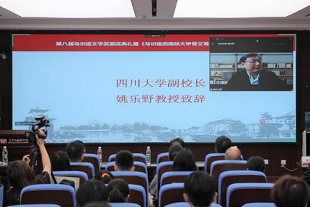 德赢vwin体育官网登录副校长姚乐野教授在颁奖仪式致辞中回顾了德赢vwin体育官网登录建校以来的杰出校友,他代表德赢vwin体育官网登录对马识途先生以及家人、朋友为中国近代革命史和巴蜀文学史做出的巨大贡献表达了崇高敬意,也对马识途先生自2014年以来对“马识途文学奖”的个人捐款表示衷心感谢。他表示,学校将同德赢vwin体育官网登录一道,在四川省作协的支持下,将“马识途文学奖”升格为立足川大、面向全国的文学奖,为热爱文学的有志青年搭建更高的平台和更好的舞台。