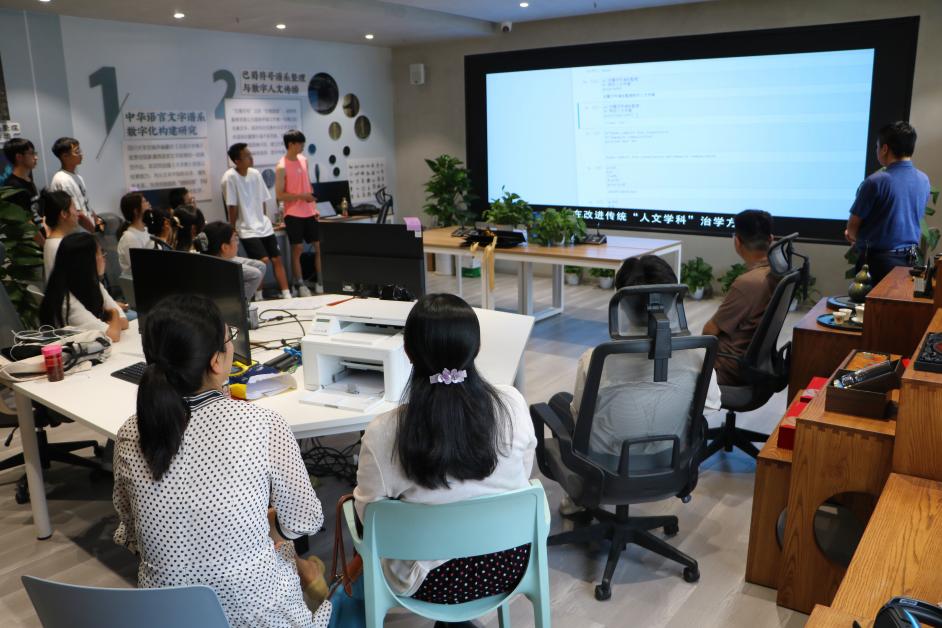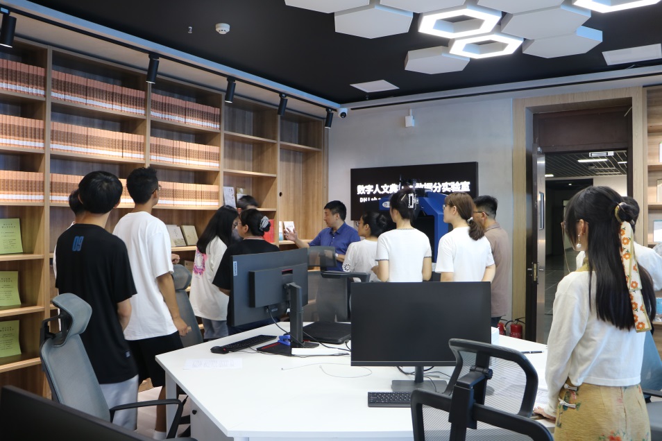 当天下午2点,西北民族大学新闻传播学院师生来到德赢vwin体育官网登录江安校区参访交流。在德赢官网实验室主任邱树雄老师的介绍下,两院师生一起参观了学院中华文化传承与全球传播数字融合实验室,现场了解了数字人文典籍大数据分实验室、数字文学场景沉浸分实验室与数字多模态符号认知分实验室的功能定位与运用情况。