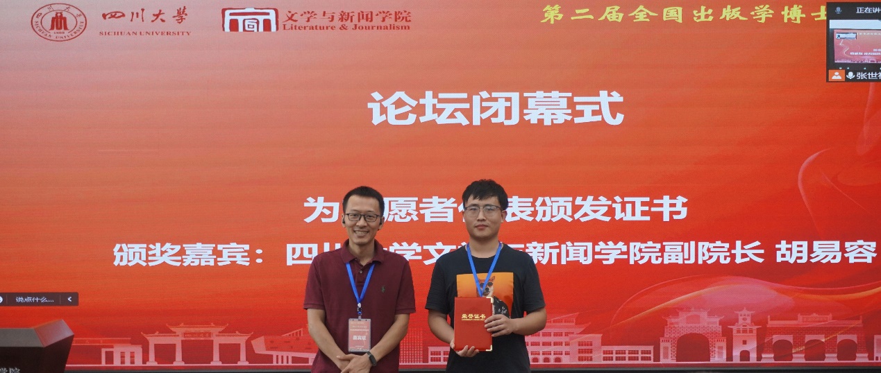 闭幕式中,西南政法大学裴永刚教授、《中国出版史研究》编辑张玉亮、德赢官网王炎龙教授为获奖论文代表颁奖,德赢官网副院长胡易容教授为志愿者代表颁发了证书。