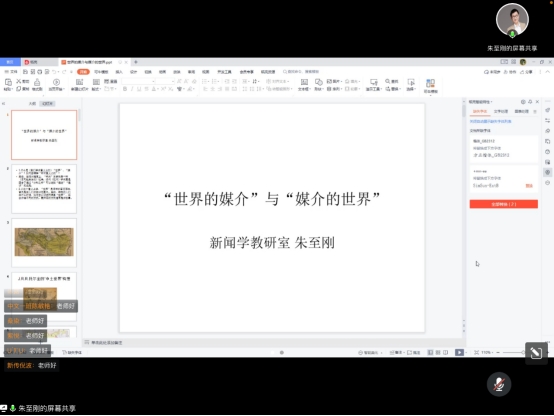 2022年9月8日下午,德赢官网新闻学教研室朱至刚教授为2022级本科新生作题为《世界的媒介与媒介的世界》的线上讲座,讲座由2022级新生辅导员杨珊老师主持。