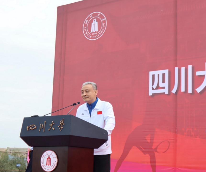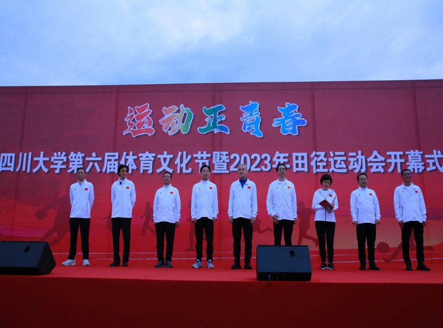 开幕式伊始,全体师生参与升旗仪式,在嘹亮的歌声中注目国旗缓缓升起。紧接着,开幕式主持人依次介绍了到场的校领导、专家代表及特邀嘉宾。我校党委常务副书记曹萍宣读了2022-2023年度德赢vwin体育官网登录体育工作表彰决定,她勉励全校师生积极加强体育锻炼,自觉弘扬体育运动精神,为建设中国特色世界一流大学作出新贡献。随后,我校游泳队队长、第21届全国大学生游泳锦标赛400m混合泳冠军王颜青同学与CDA联赛冠军获得者、我校体育学院孟达老师分别代表全体运动员与裁判员进行了宣誓。我校校长汪劲松的讲话将现场的氛围推向高潮。最后,我校党委书记甘霖宣布运动会开幕。在热身后,校领导、杰出教授、朱玲校友,及各单位负责同志带领师生运动员们从江安二号体育场出发进行健身跑,老师和同学们用充满活力的步伐点燃了现场的运动激情,揭开了运动会序幕。