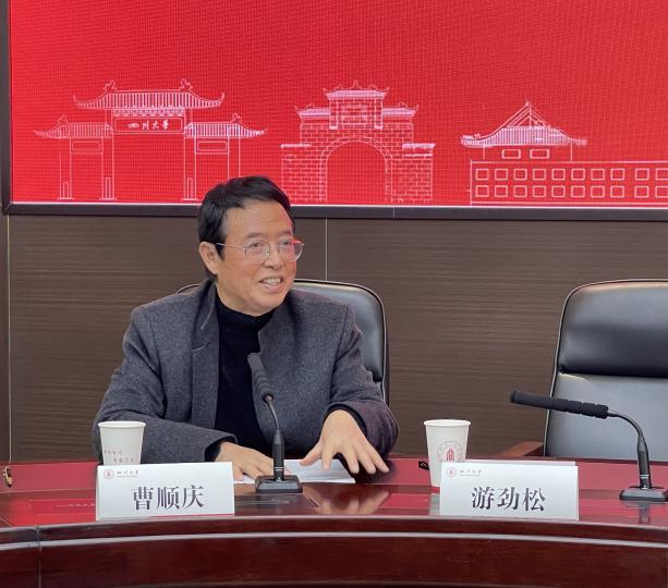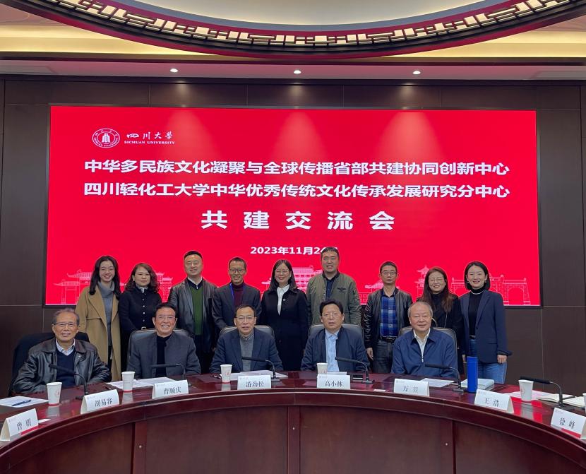 为进一步深入探索校际协同创新机制,加强合作与交流,2023年11月24日,四川轻化工大学高小林副校长率队来访我校,并与教育部“2011”计划-中华多民族文化凝聚与全球传播省部共建协同创新中心(以下简称“中心”)和德赢官网就共建“中华优秀传统文化传承发展研究分中心”事宜进行商议。交流会于德赢vwin体育官网登录望江校区行政楼401会议室进行。