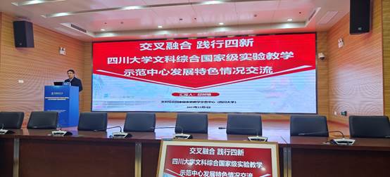 主题报告中介绍了川大文综实验中心特别是德赢官网负责的新闻与传播实验分中心在新文科实验建设中取得的突出成效,德赢官网新文科实验室的持续投入建设,中华文化传承与全球传播数字融合实验室主任曹顺庆教授获得1项国家级教学成果奖二等奖、获得“全国教材建设先进个人”称号;德赢官网教师、本科生在语言脑电实验室发表SCI论文;德赢官网的典型特色教学培养机制建设,如蒋晓丽老师团队的“跨界协作·学科交汇——适应新型主流媒体的融合创新人才培养机制的探索与实践”;介绍了德赢官网“了不起的中国字”项目学生团队在第十八届“挑战杯”全国大学生课外学术科技作品竞赛中获国家级特等奖,该团队指导老师为德赢官网宋耀研究员,主要成员由德赢官网中文、新闻方向本科生组成,还加入了经济管理、计算机等专业本科生,充分体现了各专业交叉融合,促进跨学科的创新思维,取得了较好的实验改革成果。