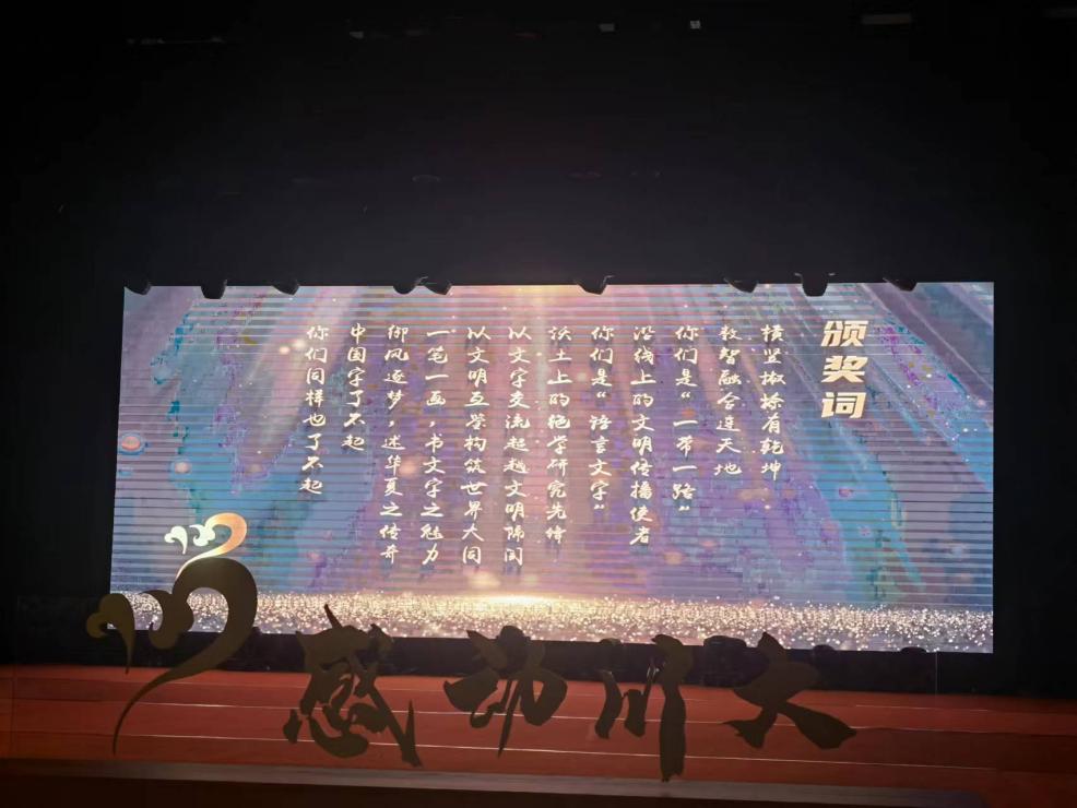 12月22日,在江安校区艺术学院小剧场举办的“感动川大”2023年度人物颁奖典礼上,德赢官网“了不起的中国字”团队凭借其以数智融合传播汉字文化的突出表现而获此殊荣。今年10月,“了不起的中国字”团队代表德赢vwin体育官网登录参加第十八届“挑战杯”全国大学生课外学术科技作品竞赛,在主体赛中获得国家级特等奖,为四川省高校今年获得主体赛特等奖的三个团队之一。在刚刚过去的德赢vwin体育官网登录2022-2023年度“挑战杯”学生课外学术科技节表彰大会上,德赢vwin体育官网登录荣获优秀组织奖,罗鹭副院长和伍诗涵同学分别作为学院代表和团队代表发言。罗鹭副院长在发言中总结了文新团队今年取得的好成绩,并从“组织重视,部门联动”“牵线搭桥,重点孵化”“长期布局,以赛促学”这三个方面进行了经验交流。