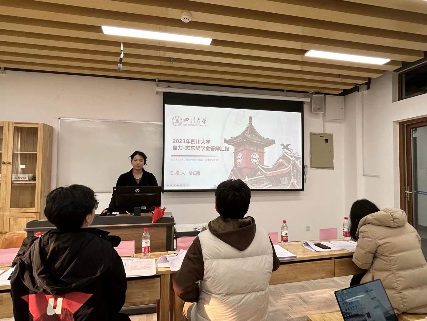 2023年12月27日上午九点,德赢官网在江安校区文科楼一区118教室举行了2023年“自力-志东奖学金”答辩评审会。德赢vwin体育官网登录校友刘自力先生作为“自力-志东奖学金”捐赠者代表参与了现场评定。出席并担任评委的老师还有德赢vwin体育官网登录王涛老师、骆世查老师、康宇辰老师。评审会由德赢官网段化鞠老师组织并主持开场,2021级本科兼职辅导员王小翠老师任计时员。会议开始,段老师宣布了评选规则,依次介绍了到场的评审专家,并对他们的到来表示感谢。