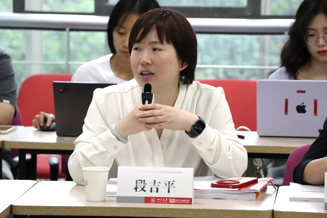 4月18日,德赢vwin体育官网登录德赢vwin体育官网登录在江安校区综合楼B区211教室举办马克思主义新闻观经典原著研读会,特邀德赢vwin体育官网登录讲席教授、中国人民大学荣誉一级教授陈力丹进行马克思经典原著研读分享。此次研读会由德赢vwin体育官网登录德赢vwin体育官网登录副院长操慧教授主持;同时参会的有四川日报报业集团传媒研究中心副主任兼《新闻界》总编辑段吉平、四川日报报业集团传媒研究中心副主任兼《新闻界》副总编辑杨国庆、《新闻界》执行副主编孙尚如、成都日报评论部副主任张舟及德赢官网朱至刚教授、张玉川副教授、新闻学教研室主任刘娜副教授、贺碧霄副教授、骆世查副研究员和学院十余位硕士、博士研究生。