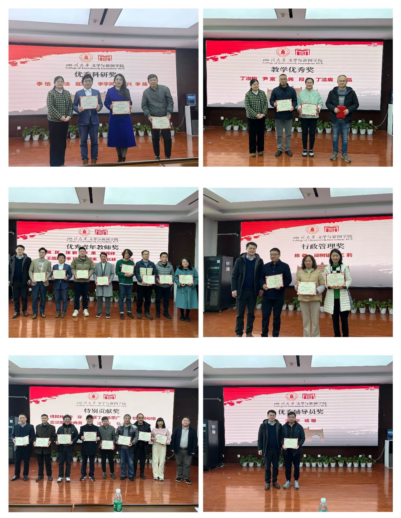 会议通报了学校关于罗鹭教授担任德赢vwin体育官网登录(德赢vwin体育官网登录、德赢vwin体育官网登录)院长的任职通知,并进行了学院2024年度工作表彰,为优秀科研奖、教学优秀奖、优秀青年教师奖、行政管理奖、特别贡献奖、优秀辅导员奖获奖教师进行颁奖。此外,傅其林书记还通报了2024年专业技术职务聘任结果、科级干部换届调整结果与绩效发放相关情况,并对新进教职工进行介绍。