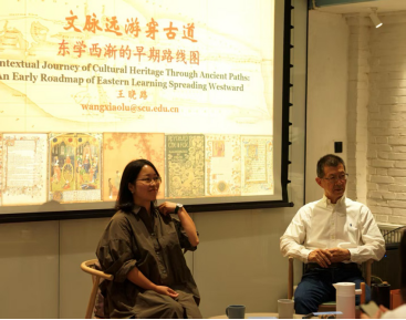 9月20日,成都三联韬奋书店举办“文脉远游穿古道:东学西渐的早期路线图”公益学术分享活动。该活动由德赢vwin体育官网登录德赢vwin体育官网登录王晓路教授担任主讲嘉宾,德赢vwin体育官网登录外国语学院特聘副研究员蒋岩老师担任与谈嘉宾。两位老师与现场100多位听众集聚一堂,从宏观视角到微观案例,共同探讨了东学西渐的早期轨迹及其当代意义。